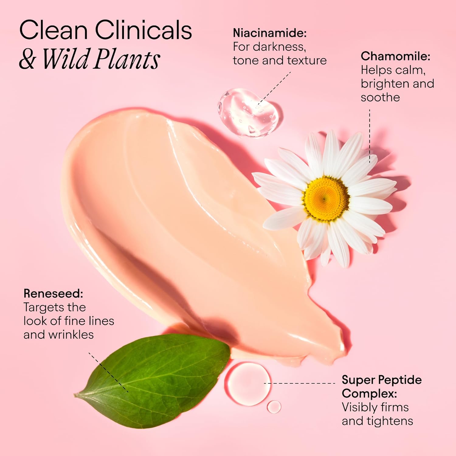 • KEY INGREDIENTS: Super Peptide Complex: Visibly firms and tightens. Niacinamide: For darkness, tone and texture. Reneseed (Retinol Alternative): Targets the look of fine lines and wrinkles. Chamomile: Helps calm, brighten and soothe.